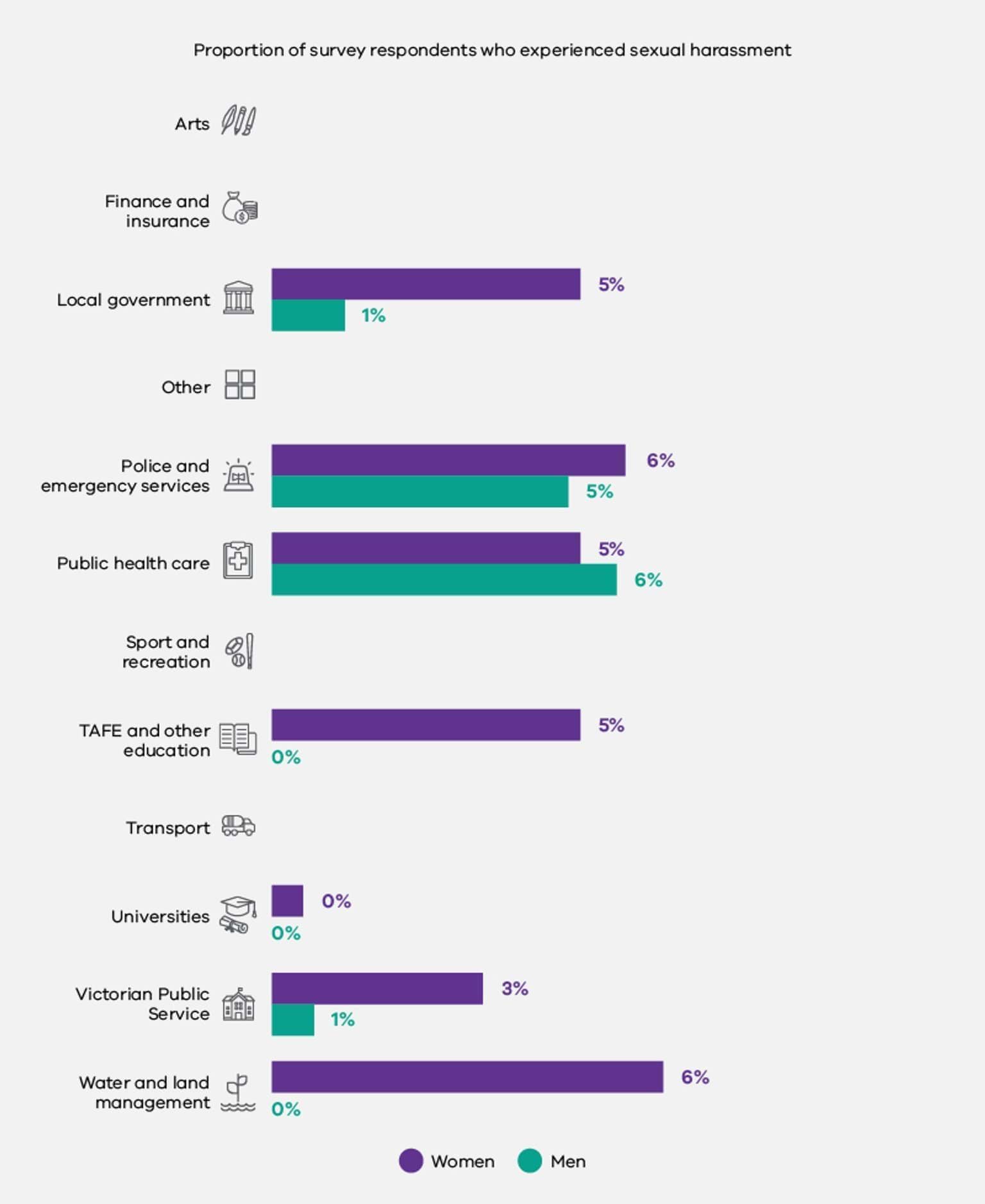 - VAGO, Sexual Harassment in the Victorian Public Service, 2019, pp 12, 22, 25, accessed 9 August 2022; AHRC, Respect@Work, p 716.